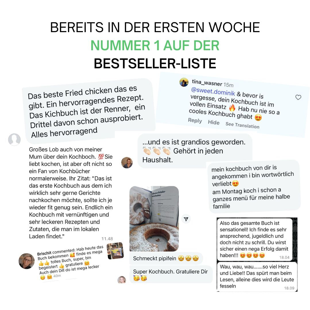 Ich kann es noch gar nicht so richtig glauben – dank euch ist mein Kochbuch direkt in der ersten Woche Nummer 1 auf der Bestseller-Liste! 😍 Ein riesiges Dankeschön an euch alle, die es gekauft und mich so großartig unterstützt haben. Ihr seid einfach die Besten! 🥳
